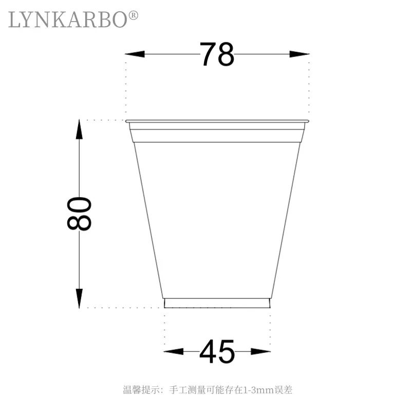 Kínai székhelyű professzionális gyártóként, beszállítóként és gyárként a LYNKARBO® piacra dobott egy 78 mm-es PLA 7 unciás csészét. Ez a csésze növényi alapú anyagból készült, lehetővé téve az erőforrások újrahasznosítását, és támogatja a hatszínű testreszabott nyomtatást.